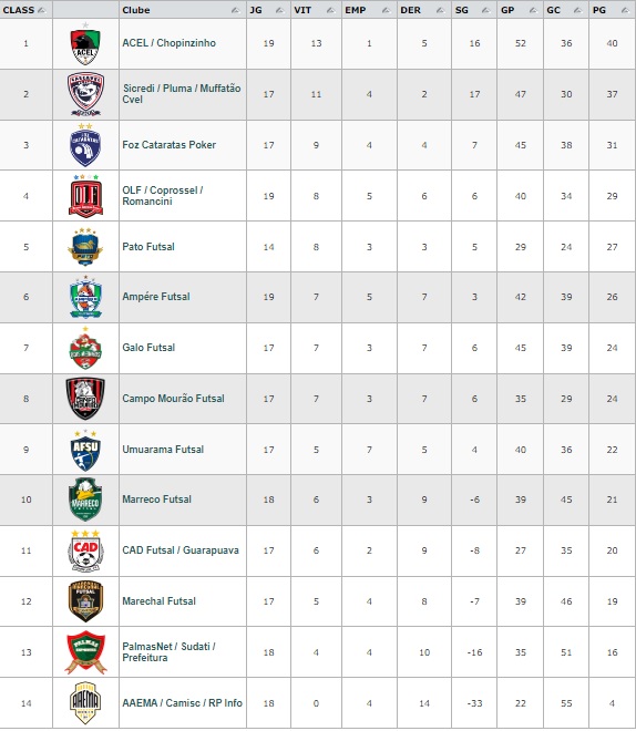 Após a derrota na semana passada para o Marreco, fora de casa, o time comandado pelo técnico Roberto Nunes viu crescer a ameaça do rebaixamento para a Série Prata em 2023. Atualmente na 12ª posição, com 19 pontos em 17 jogos, o Marechal está a apenas três do penúltimo colocado Palmas, que tem uma partida a mais e recebe nesta terça-feira (30), o Galo Futsal, de Dois Vizinhos.