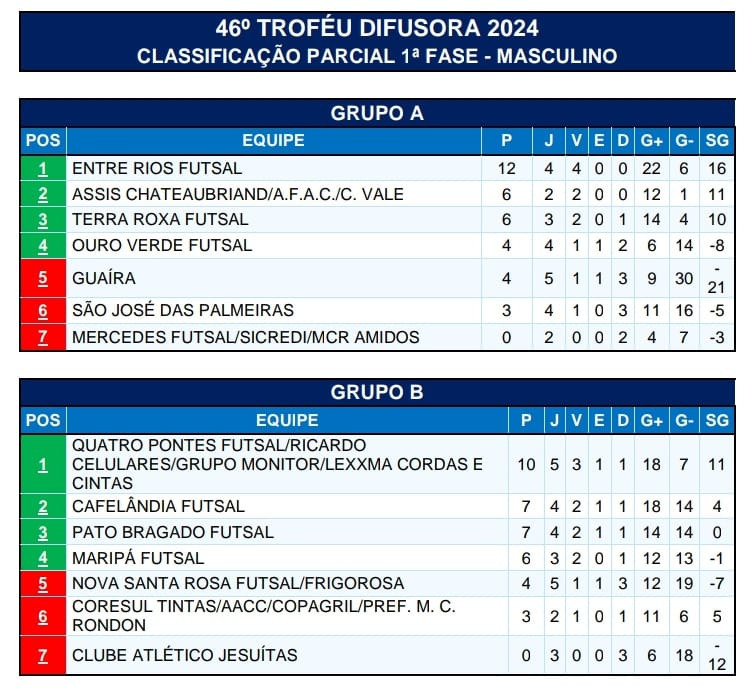Segue perfeita a campanha de Entre Rios Futsal no Troféu Difusora 2024. Nesta quinta-feira (20), no ginásio Laudir Anderle, o time dirigido pelo técnico Andrei Draghetti venceu São José das Palmeiras por 3 a 2, de virada, e disparou na liderança do Grupo A, agora com 12 pontos em quatro jogos.