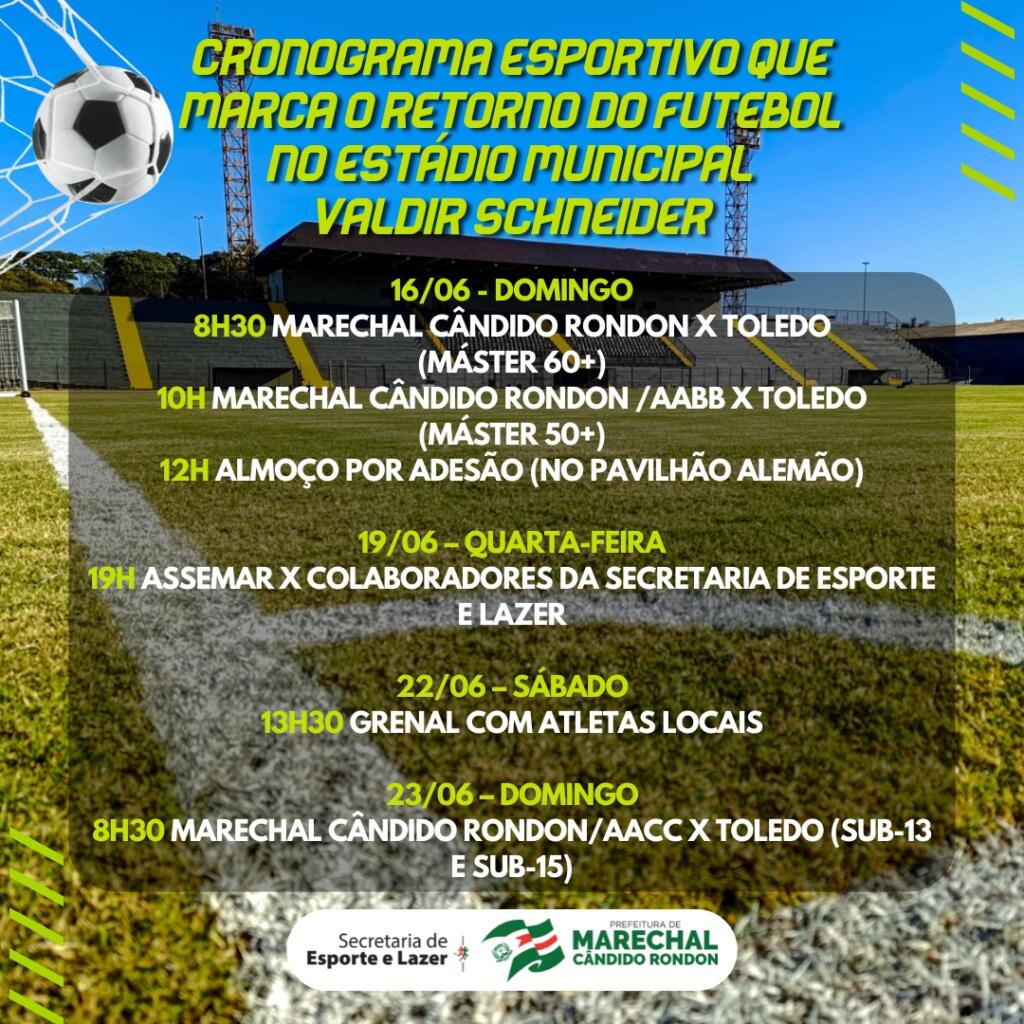 A prefeitura de Marechal Cândido Rondon, através da Secretaria de Esporte e Lazer, organizou um cronograma de jogos que marcará o retorno do futebol no Estádio Municipal Valdir Schneider.
