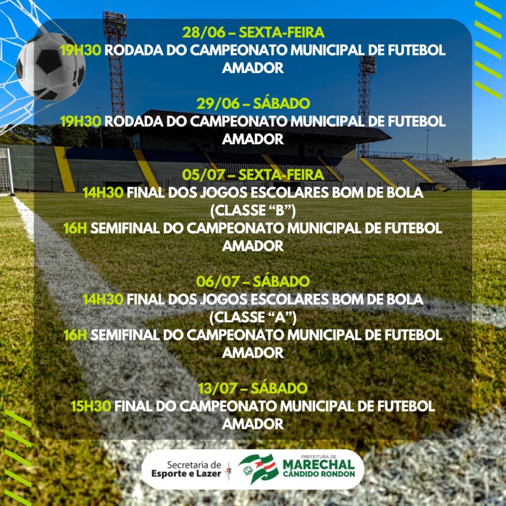 O secretário de Esporte e Lazer, Diogo Schneider, destaca que a programação iniciará neste domingo (16) e seguirá até o dia 13 de julho, quando acontecerá a final do Campeonato Municipal de Futebol Amador. “Convidamos a todos para prestigiar os jogos. Para a entrada no estádio, solicitamos que todos levem um litro de leite longa vida, que será destinado para entidades assistenciais” mencionou o secretário.