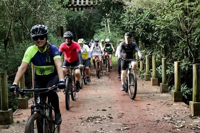 Estão disponíveis dois percursos de nível moderado. O trajeto maior, com 41,89 quilômetros, inclui 14 quilômetros em estrada de chão, 1,2 quilômetros em pedra irregular e 26,9 quilômetros em asfalto. O trajeto menor, com 29,9 quilômetros, percorre oito quilômetros de estrada de chão, 1,2 quilômetros de pedra irregular e 20,7 quilômetros de asfalto. Entre os atrativos visitados durante o percurso estão o Refúgio Biológico da Itaipu Binacional, o Cristo Esplendor e o próprio Balneário de Santa Helena.