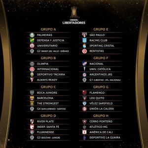 A Confederação Sul-Americana de Futebol (Conmebol) sorteou nesta sexta-feira (9) os grupos da primeira fase da Libertadores. Atual campeão, o Palmeiras está no Grupo A e terá pela frente o Defensa y Justicia (Argentina), ganhador da última Copa Sul-Americana e rival a quem já está enfrentando pelo título da Recopa Sul-Americana. Na última quarta-feira (7), o Verdão venceu na cidade de Florencio Varela (Argentina) por 2 a 1. O jogo de volta será na próxima quarta (14), às 21h30 (horário de Brasília), no Mané Garrincha, em Brasília.