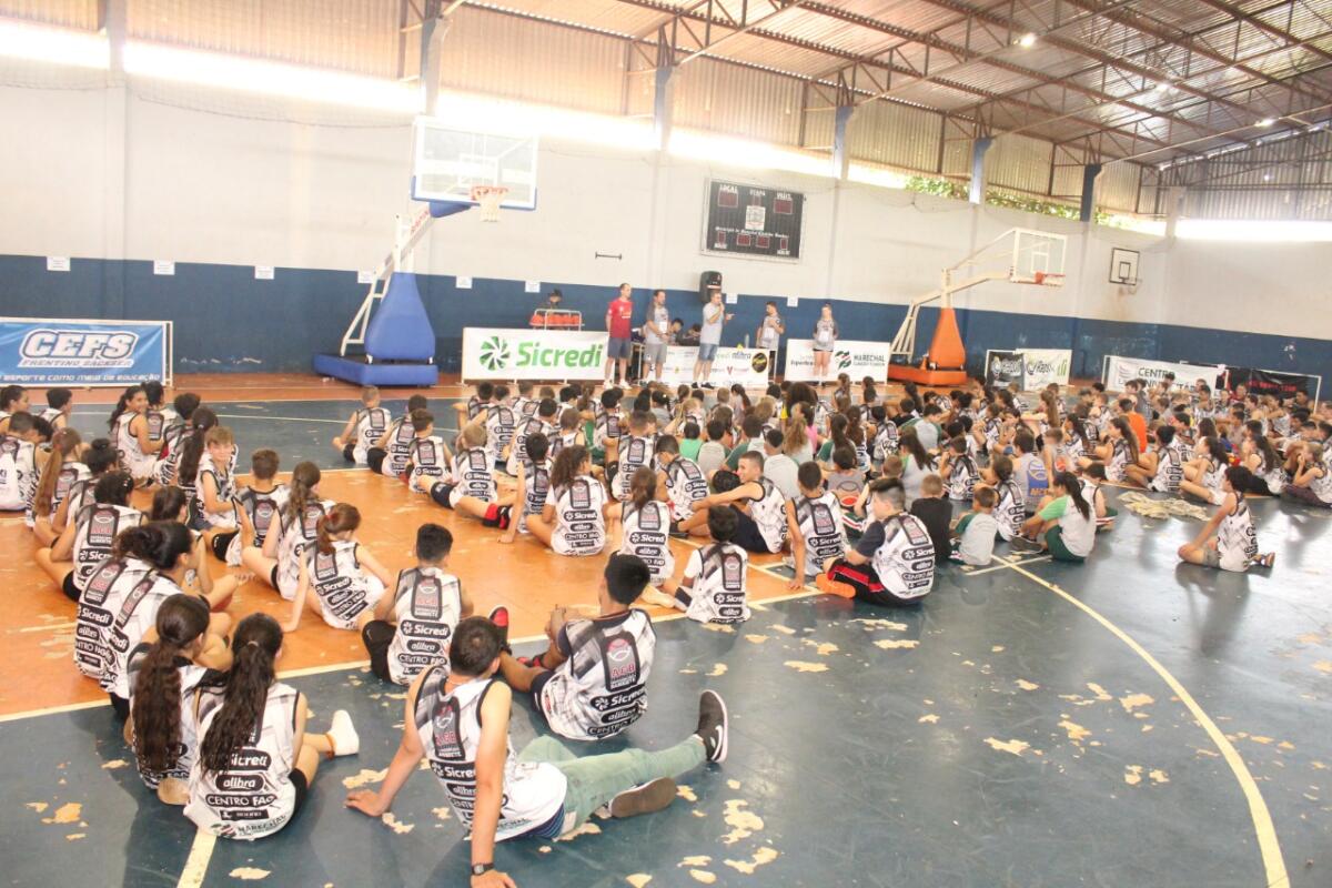 Uma tarde de muita diversão, brincadeiras, lanche e premiações marcou o encerramento das atividades de 2022 da Associação Crescendo com o Basquete, realizado nesta sexta-feira (09), no ginásio do CEMIC, com a presença de quase 200 crianças e adolescentes que integram os núcleos dos colégios Frentino Sackser, Paulo Freire, Osvino Weirich, Eron Domingues e Antonio Rockembach.
