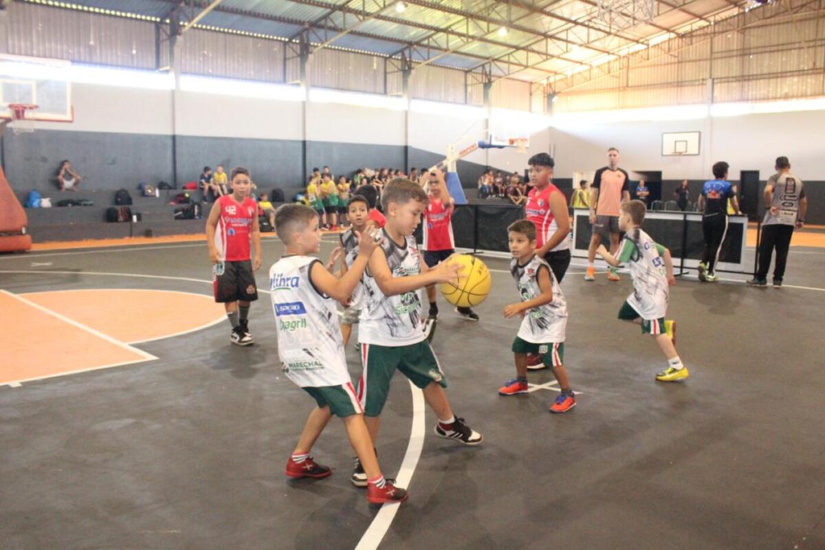 Na última quinta-feira (11), a Associação Crescendo com o Basquete/Prefeitura de Marechal Rondon recebeu a Abatol, de Toledo, para um festival de basquete que reuniu centenas de alunos das categorias sub-8 à sub-16, que marcou também a inauguração da pintura da quadra do ginásio do CAF.