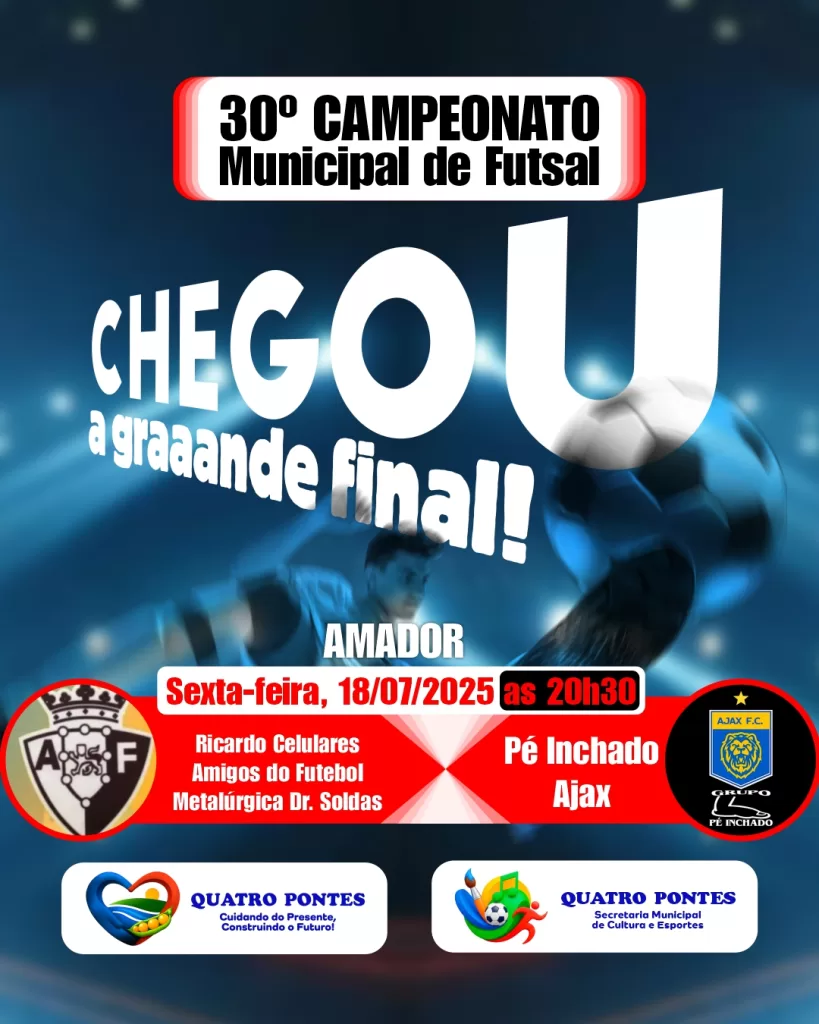 Chega ao fim nesta sexta-feira (18), uma das edições mais marcantes do Campeonato Municipal de Futsal de Quatro Pontes. Após quase quatro meses de intensas disputas, o torneio terá sua grande final no Ginásio de Esportes do Complexo Escolar, com dois confrontos decisivos que prometem envolver o público e celebrar o talento dos atletas locais.