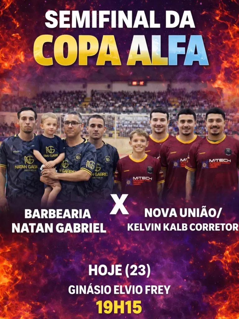 A grande final da Copa Alfa está marcada para a próxima sexta-feira (27), novamente no Ginásio Elvio Frey, reunindo os vencedores da noite em busca do título municipal.