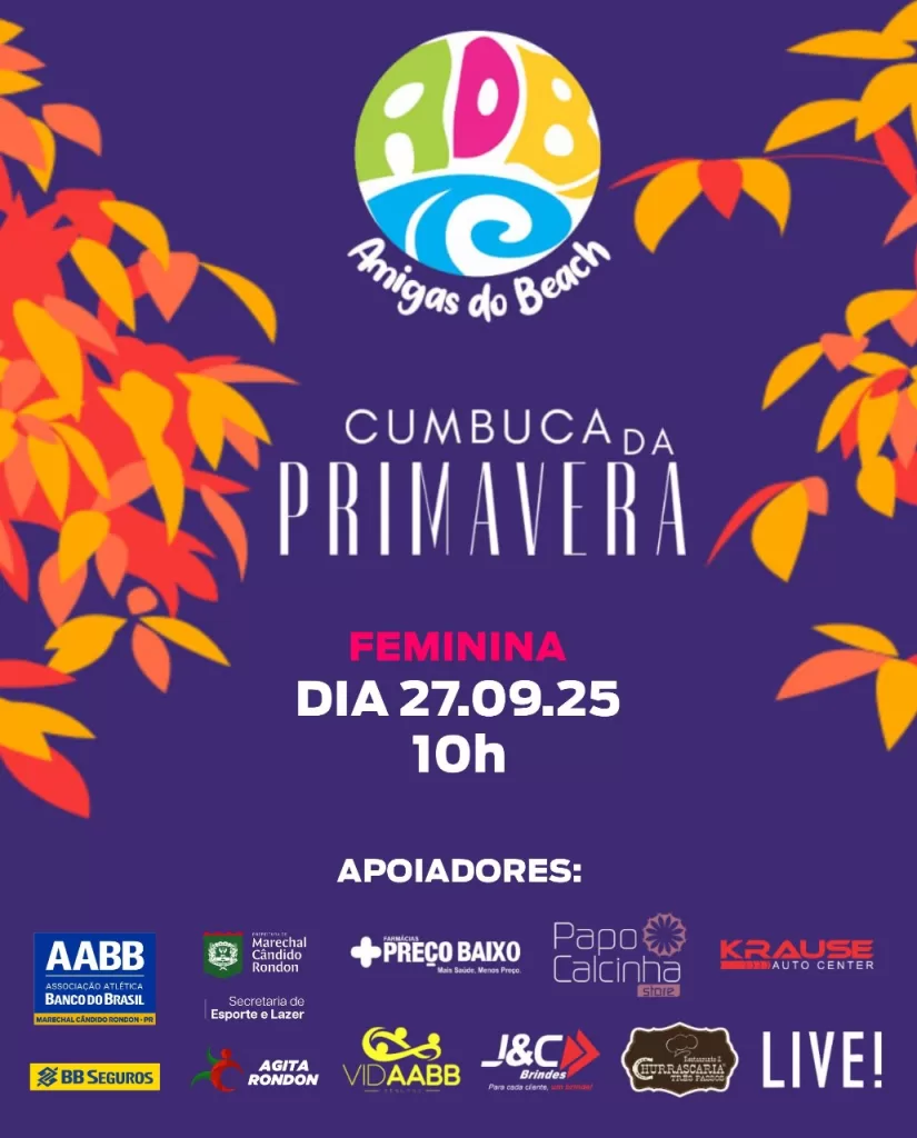 A partir das 10 horas, 48 atletas de Marechal Rondon e região irão participar da Cumbuca da Primavera, evento promovido pelo grupo Amigas do Beach. Sucesso absoluto nas edições anteriores, a Cumbuca teve suas inscrições completas em poucas horas, garantindo mais um dia de muito esporte, diversão e solidariedade.