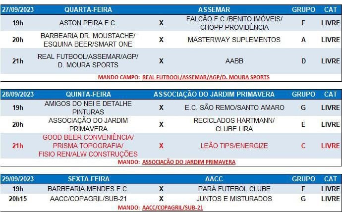 Confira a programação de jogos desta semana: