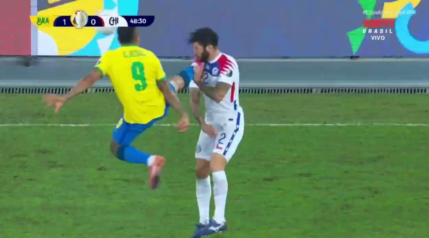 Gabriel Jesus recebeu a punição por ter sido expulso após acertar o rosto do chileno Mena com sua chuteira.