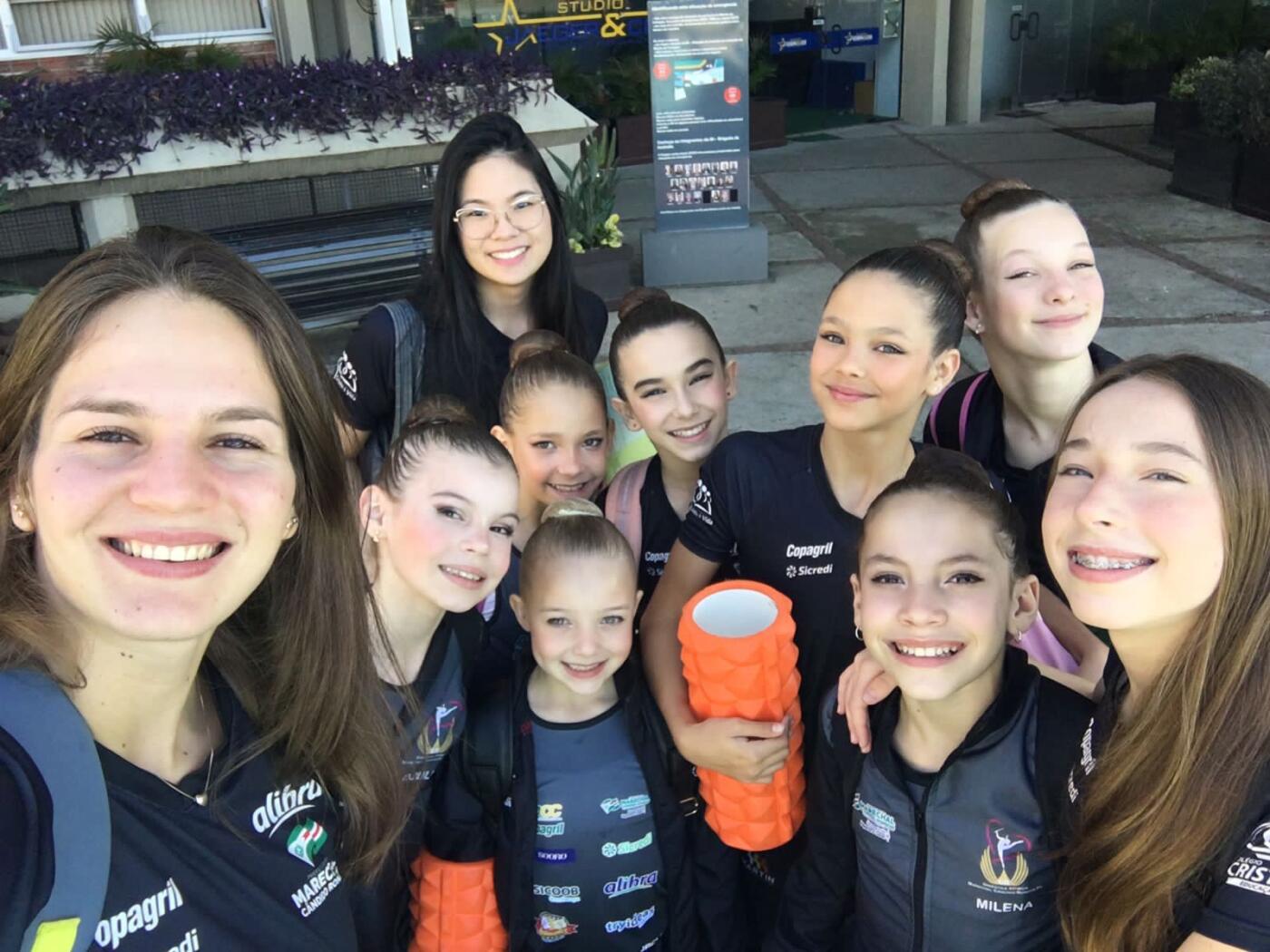 As ginastas estão sendo acompanhas pela técnica Vívian Yamamoto e pelas auxiliares Karine Walter e Caroline Kunzler.
