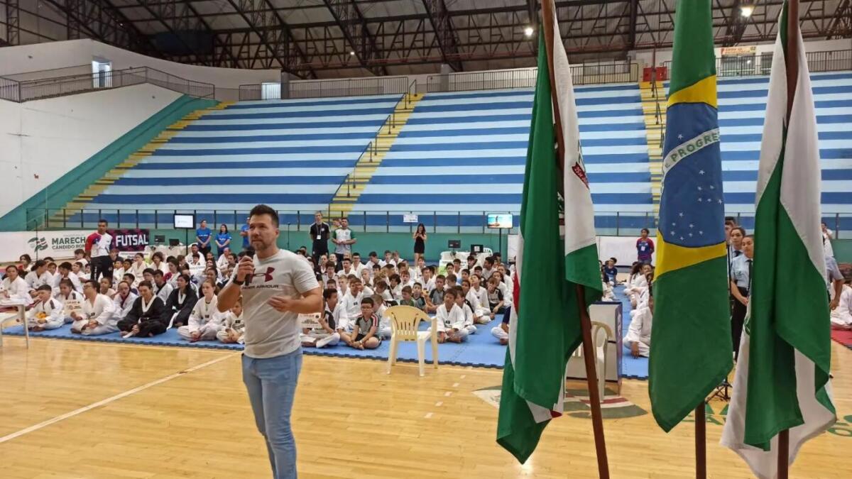 Foi aberta há instantes, a 4ª Copa ACDR de Taekwondo WT. O certame reúne cerca de 80 atletas rondonenses neste domingo (24), no Ginásio Ney Braga, em Marechal Cândido Rondon.