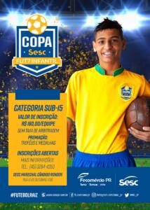 As inscrições devem ser feitas no sescpr.com.br/inscricoes-esporte/inscricao/copa-sesc-fut7-infantil-sub-15/.