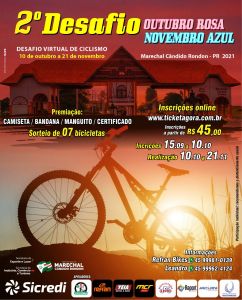 Depois do sucesso alcançado na primeira edição, realizada no ano passado, estão abertas a partir desta quarta-feira (15) até 10 de outubro, as inscrições para o 2º Desafio Outubro Rosa-Novembro Azul de Ciclismo. Realizado na modalidade virtual, o participante pode pedalar na própria cidade ou região onde mora, nas datas e horários de sua preferência, durante os 43 dias de vigência do Desafio.