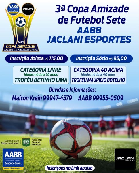 Se você ainda não garantiu sua presença na 3ª edição da Copa Amizade/AABB/Jaclani Esportes de Futebol Sete, competição organizada pela Associação Atlética Banco do Brasil, não perca mais tempo.