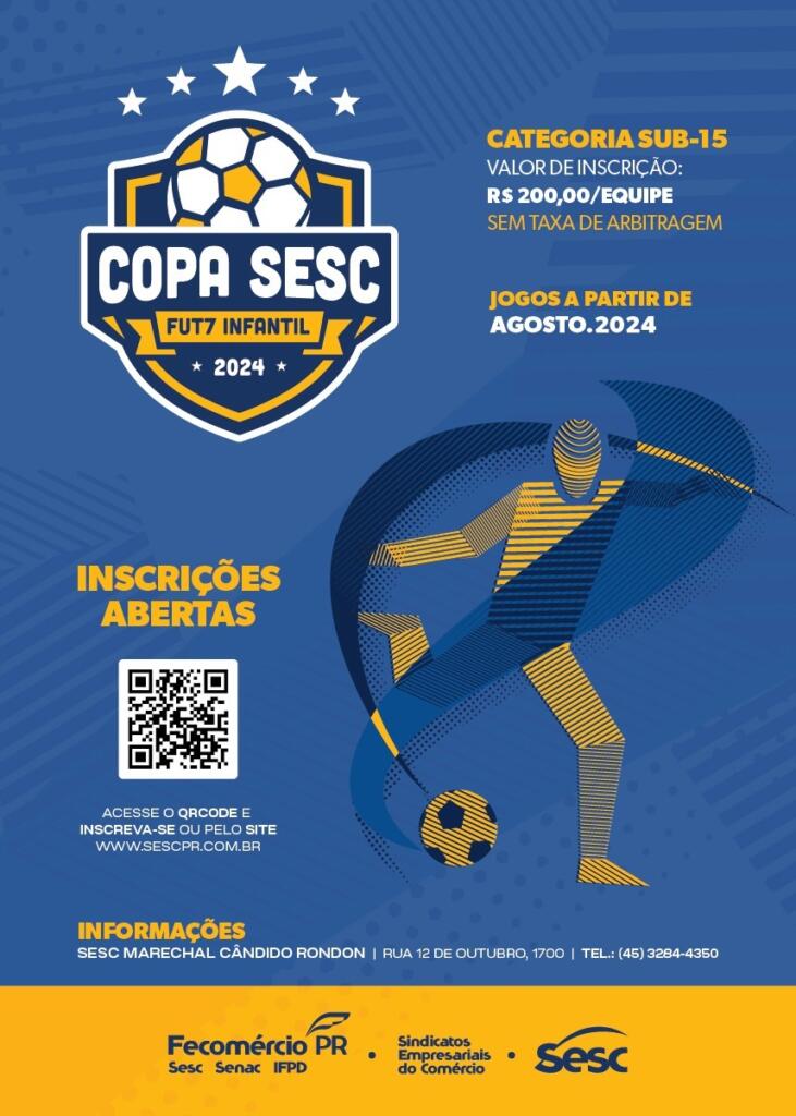 Estão abertas até o dia 5 de agosto as inscrições para a 2ª edição da Copa SESC Fut 7 sub-15, competição organizada pelo SESC Paraná que terá sua 1ª fase realizada em 20 municípios do estado.