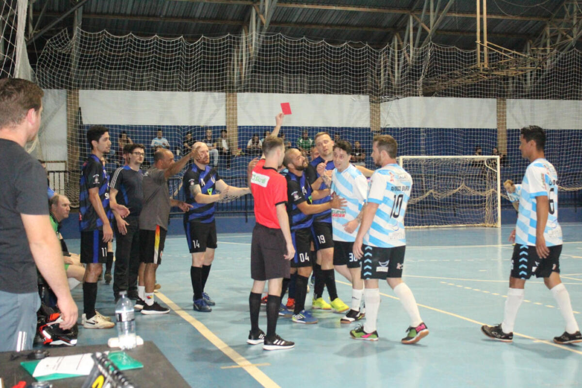 Em seguida, a Bianchessi Barbearia goleou o Monarcas FC por 7 a 0, em um duelo muito mais tranquilo para a arbitragem. Matheus (2), Valiati (2), Fabyan, Fraga e Rhyan anotaram os gols da Bianchessi, que chegou a seis pontos no Grupo C, ao lado da líder Domus/Multifestas/Coresul, que ainda vai jogar sua terceira partida.