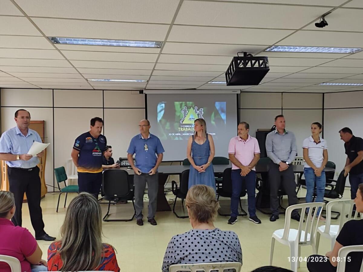 Na manhã desta quinta-feira (13), no auditório da Prefeitura de Marechal Cândido Rondon, aconteceu o evento de lançamento da 1ª Corrida Rústica do Trabalhador, que será realizada no dia 30 de abril. Estiveram presentes autoridades, membros da Associação dos Servidores Municipais de Marechal Cândido Rondon (Assemar), representantes de entidades e empresas parceiras.