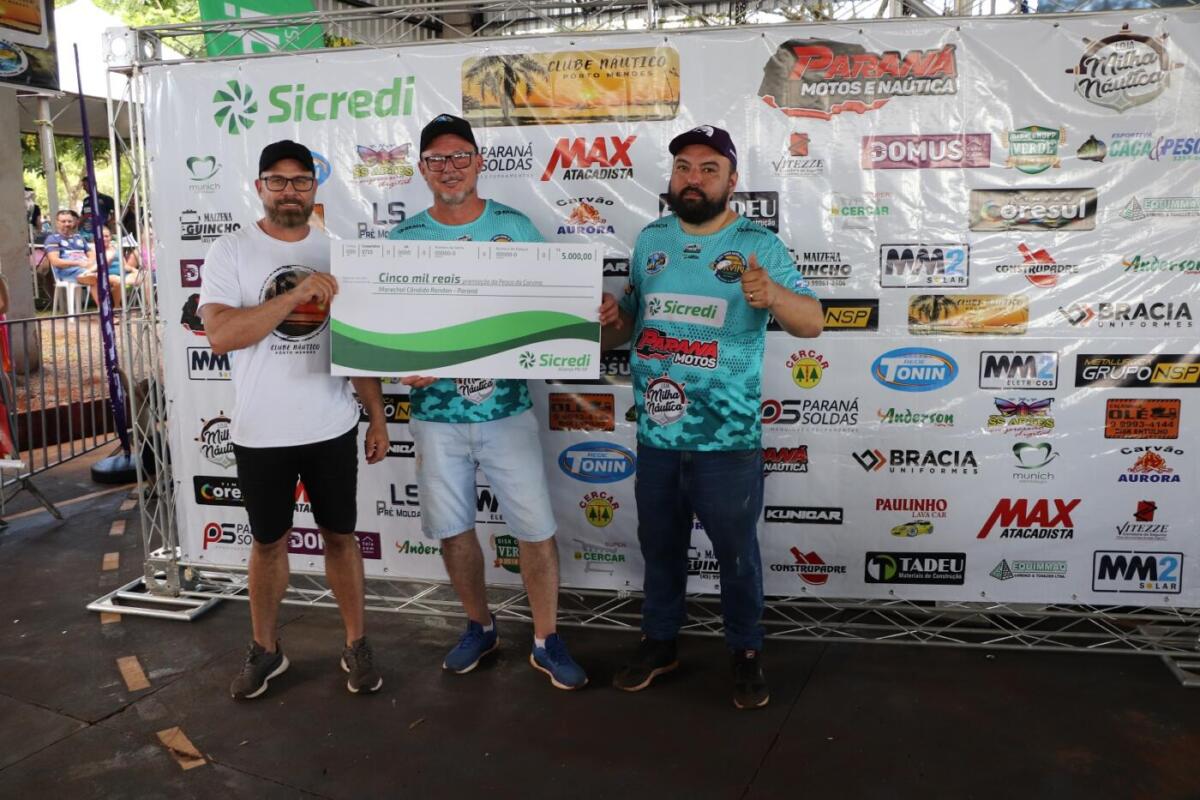 Foram contemplados com motores de popa de 30hp, a equipe Os Penetra; de 20hp, Mosquitos do Lago; de 20hp, Kunicar/Sorasa; de 15hp, Clube Náutico Porto Mendes; de 15hp, Pai, Filho e Netos – Pebri; barco de alumínio, Luiz Gonzaga Borges, que não esteve presente; R$ 5 mil, Green Boat; R$ 5 mil, Maxebert, que esteve representada, mas ausente; R$ 3 mil, José Antônio Zschitschick; R$ 1 mil, Equipe Xixerga; R$ 1 mil, Família Backes; motor de 3hp, Rodo Finkler.