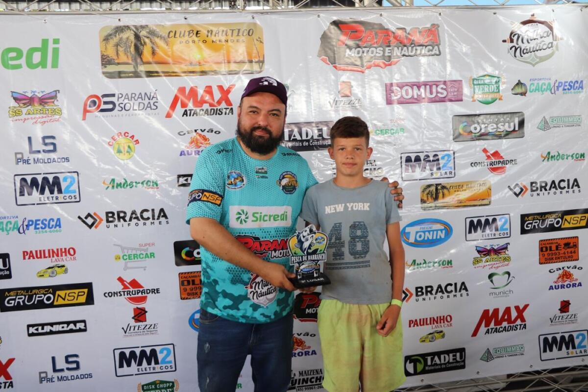 A pesca de barranco teve como 1º colocado Cauan Günther, que pescou um tucunaré de 45 centímetros; 2º, Luan Günther, que pescou uma raia de 38 centímetros; e em 3º lugar, Guilherme Gabriel, que pescou uma piranha de 16,5 centímetros.