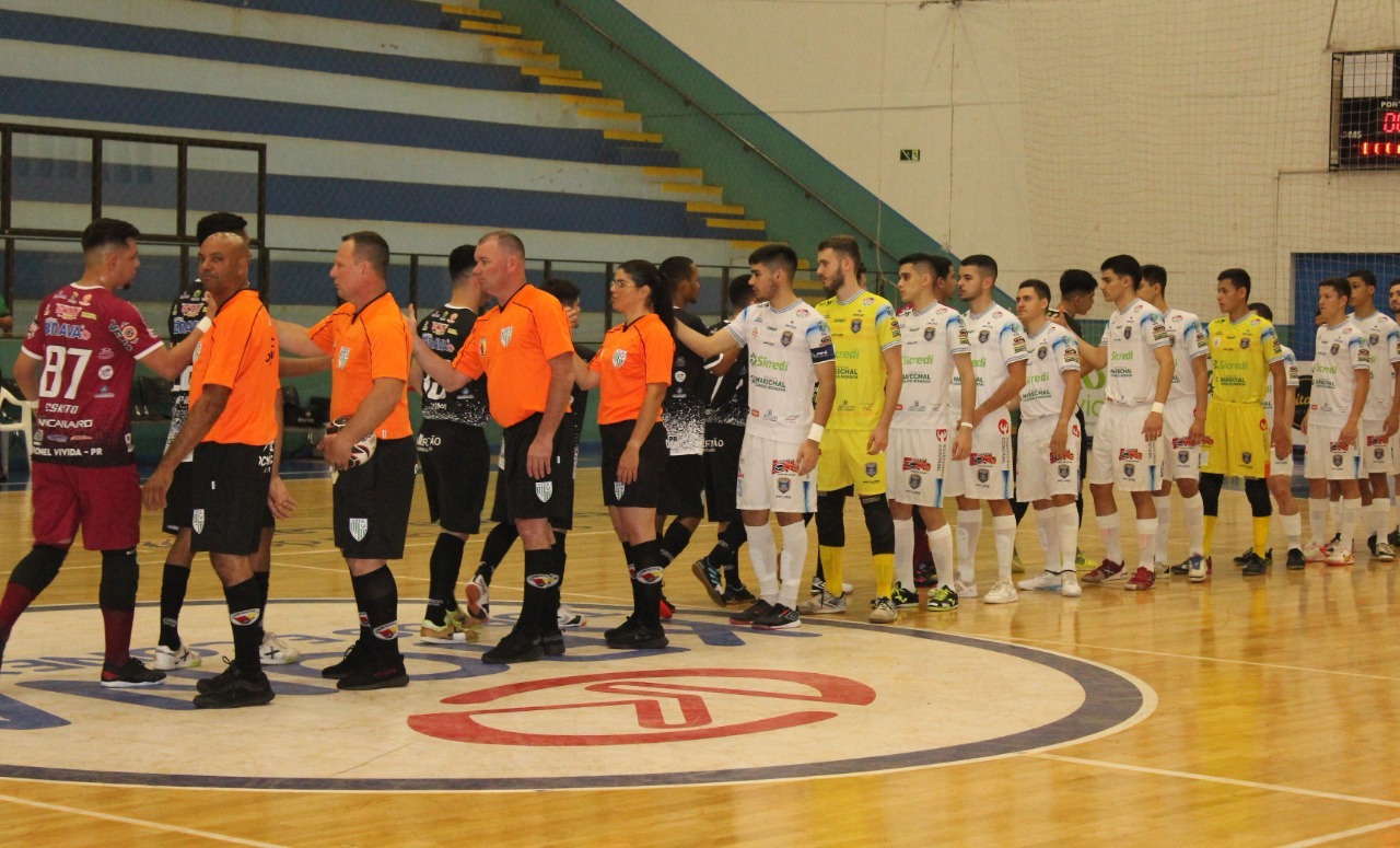 Em uma partida bastante movimentada, com direito na 15 gols assinalados, o Marechal Futsal venceu o Coronel por 9 a 6, nesta sexta-feira (26), no ginásio Ney Braga, em seu último compromisso na fase de classificação do Campeonato Paranaense de Futsal sub-20. Com o resultado, o time comandado pelo técnico Bruno Melli termina na liderança do Grupo A, com 24 pontos, e agora aguarda a definição dos outros dois grupos para conhecer seu adversário nas oitavas-de-final.
