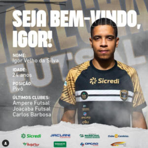 O Marechal Futsal anunciou na tarde desta sexta-feira (29) a contratação do pivô Igor, de 24 anos, para a sequência da temporada 2022. O atleta tem passagens pelo Ampere Futsal, Joaçaba Futsal e Carlos Barbosa.