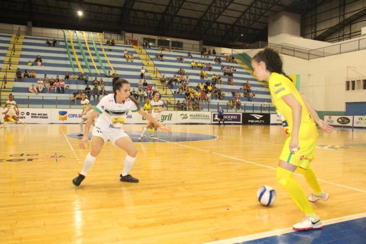Foi no sufoco, mas a AACC Copagril/ Prefeitura de Marechal Rondon está garantida na 2ª fase do Copa do Brasil de Futsal Feminino, competição organizada pela CBFS. Nesta sexta-feira (07), no ginásio Ney Braga, a equipe rondonense derrotou a Malgi Futsal, em Pelotas (RS), por 3 a 1 (na ida, empate por 3 a 3), e agora vai encarar o atual campeão Magnus/ Taboão (SP) na 2ª fase.