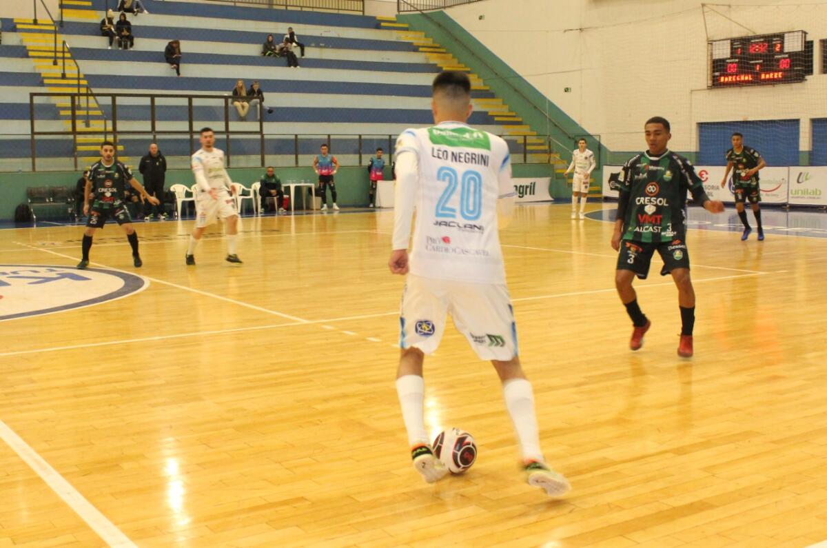 Em seu penúltimo compromisso na fase de classificação do Campeonato Paranaense Sub-20, o Marechal Futsal derrotou o Marreco, de Francisco Beltrão, por 2 a 1, na quarta-feira (10), no Ginásio Ney Braga, e retomou a liderança do Grupo A, com 21 pontos, ao lado da ACEL Chopinzinho.