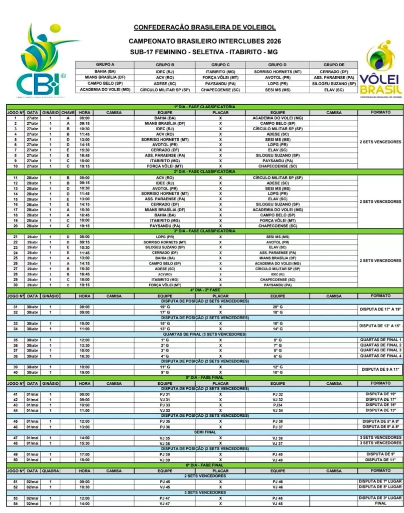 O campeonato será disputado em várias fases: classificatória, segunda fase, terceira fase, semifinais e finais, com jogos realizados em formato de melhor de dois ou três sets, dependendo da etapa. As equipes estão divididas em grupos (A, B, C e D), e os confrontos definem quem avança rumo às fases decisivas.