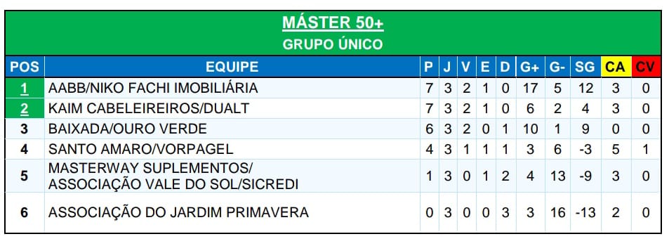 Em seguida, o Kaim Cabeleireiro/Dualt deixou escapar o 100% de aproveitamento ao empatar com a Masterway Suplementos/Associação Vale do Sol/Sicredi por 1 a 1. Cleoter Muller abriu o placar para a Masterway, que somou seu primeiro ponto, e Arlei Sauer igualou para o Kaim, que também chegou a sete pontos, mas está em 2º lugar no saldo de gols.