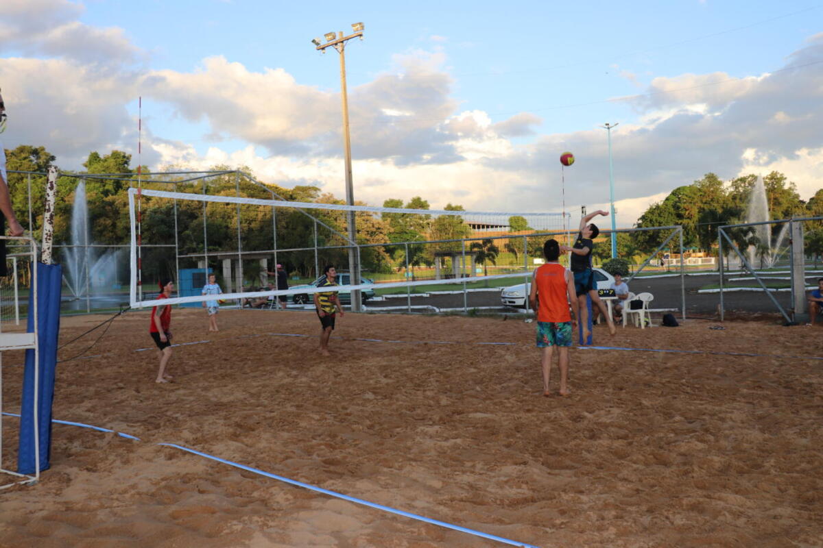 O voleibol de areia teve sua estreia no sábado (11), à noite e conta com 17 equipes no masculino e 06 no feminino.