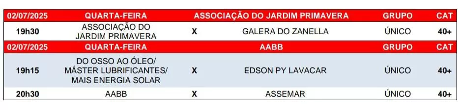 Com a mudança a pedido dos próprios times, a 1ª rodada do Máster será na segunda-feira (30) com jogos na Assemar e Associação Ouro Verde, em Iguiporã, enquanto o Veterano terá seu início na quarta-feira (2), com jogos na AABB e Jardim Primavera.