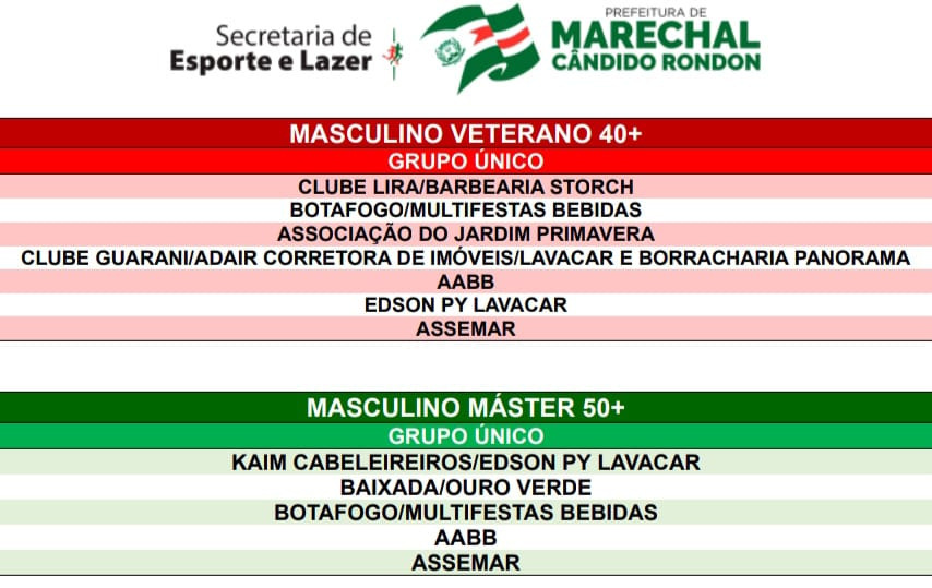 Na classe Veterano (40+), que terá sete equipes, e Máster (50+) com outras cinco, os times se enfrentam em turno único, com os quatro primeiros colocados avançando para a semifinal.