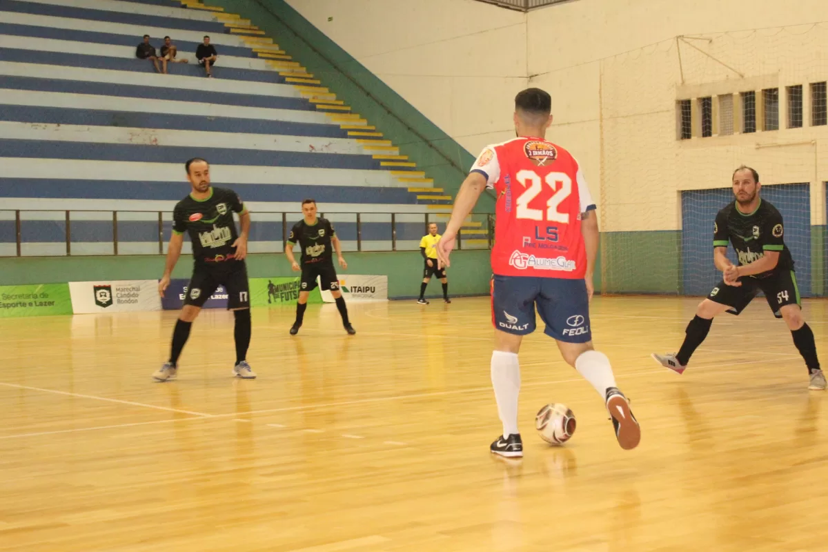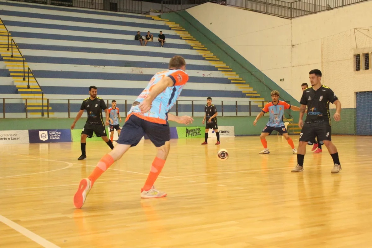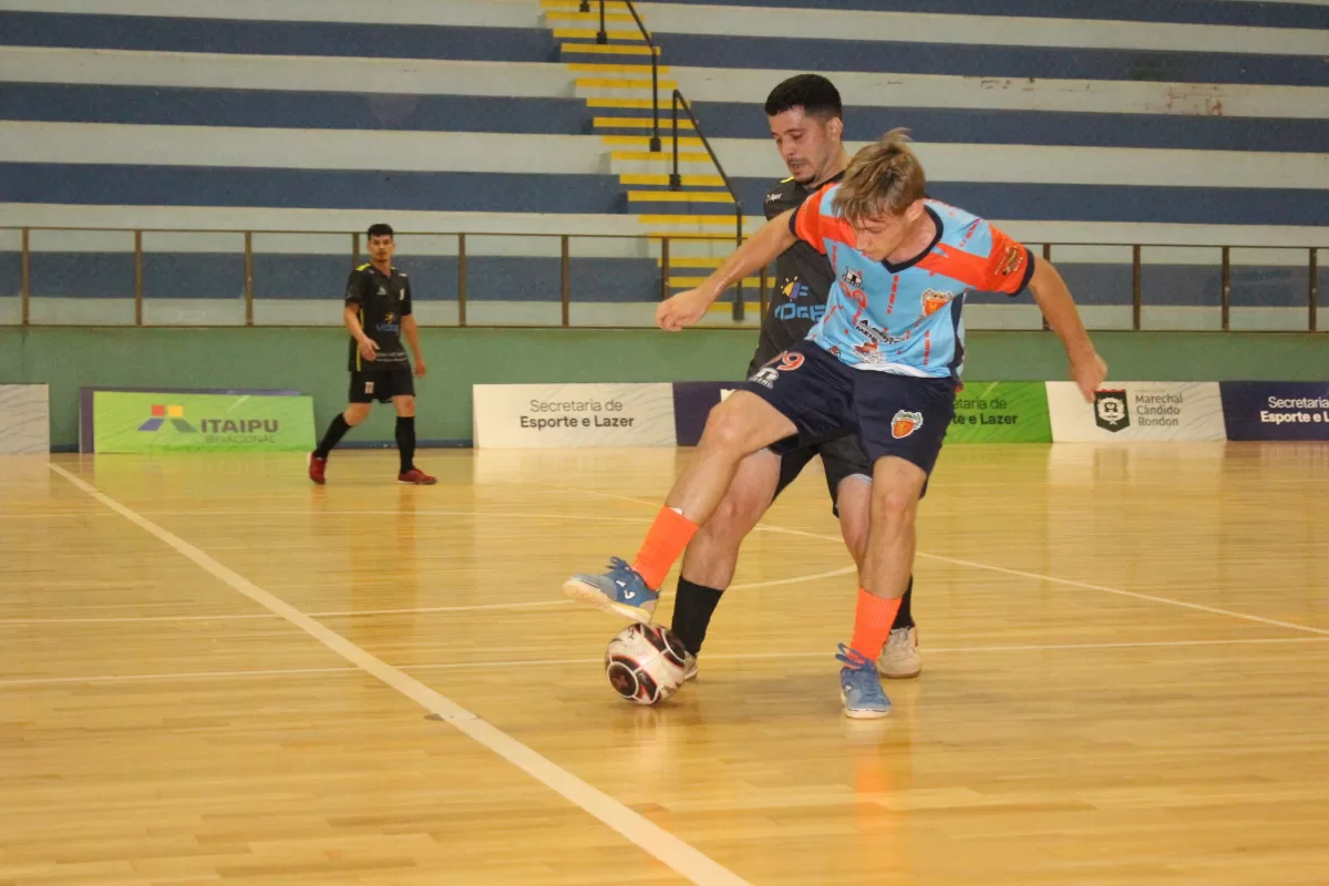 Duas partidas fecharam nesta terça-feira (22) a 1ª fase do Campeonato Municipal de Futsal Masculino 2025, promovido pela Secretaria de Esporte e Lazer de Marechal Rondon, com apoio da Itaipu Binacional, definindo os times que seguirão na disputa do título, a Chave Ouro, e os oito times que disputarão a Chave Prata.