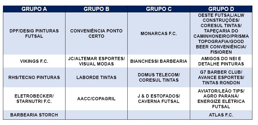 Confira os grupamentos: