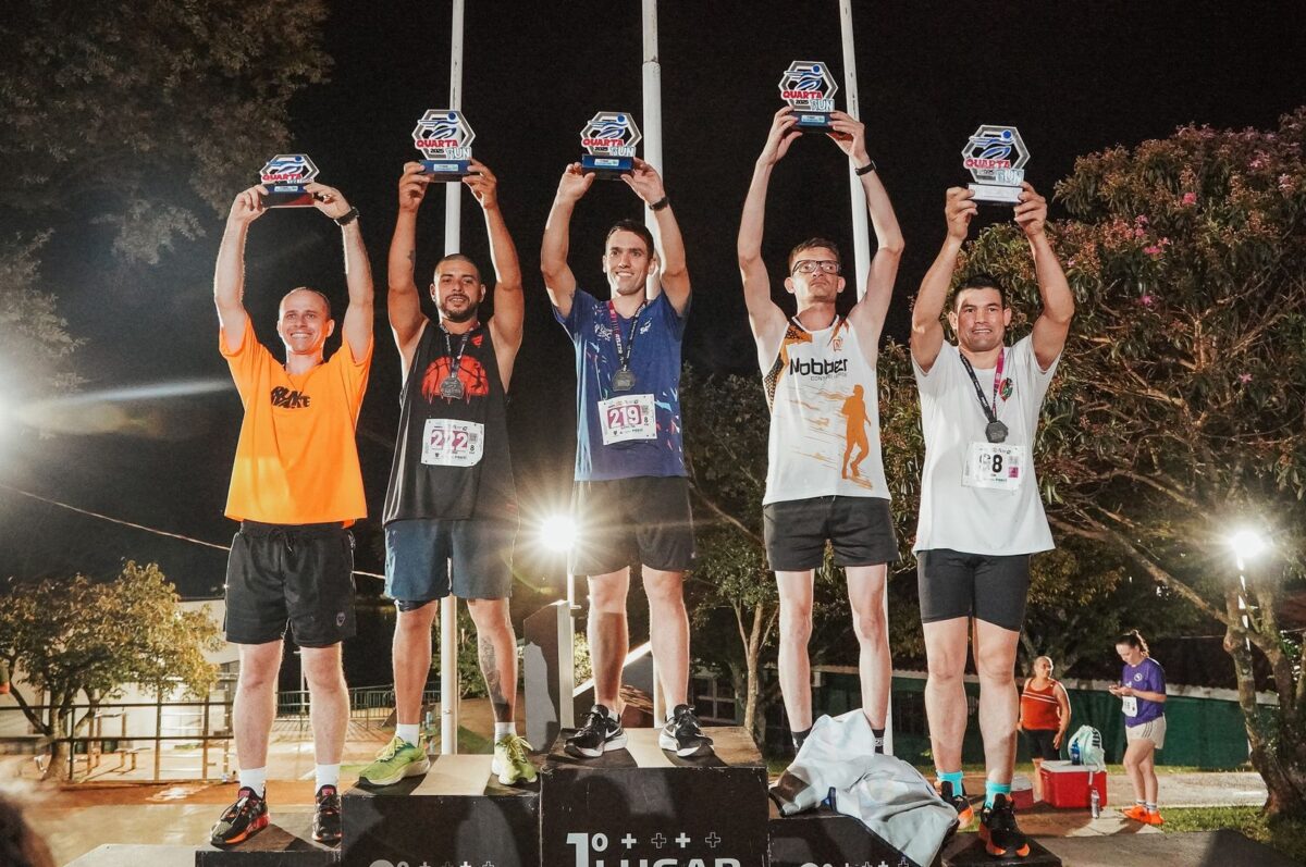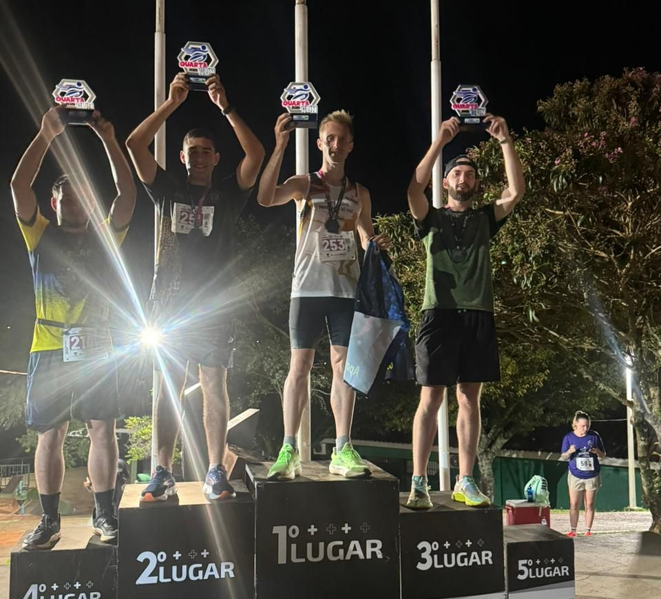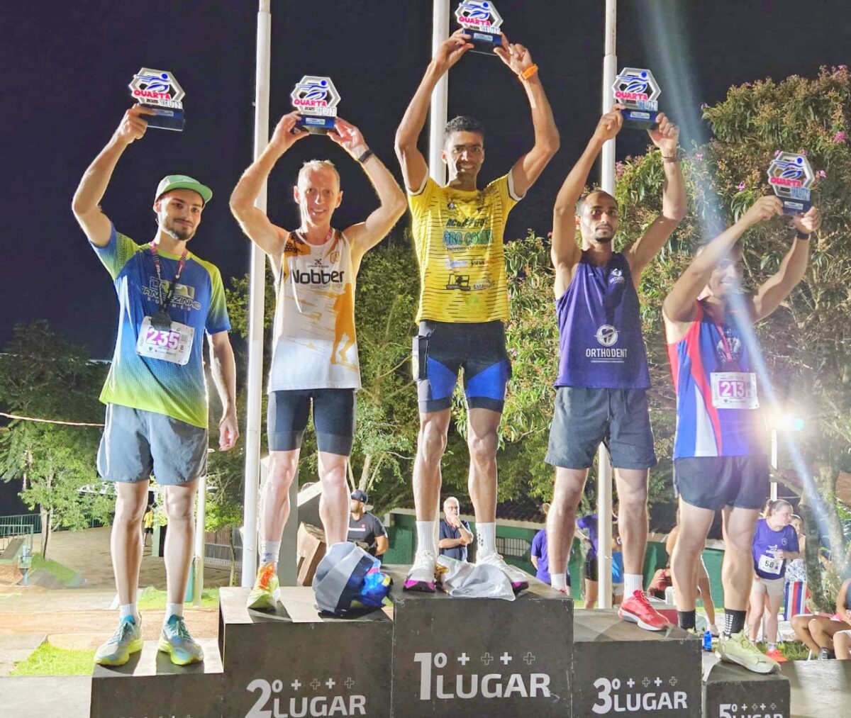 Os atletas da Nobber Runner’s mostraram um desempenho excepcional, garantindo cinco pódios na prova noturna. Gilmar Debus, “Batata”, conquistou o 2º lugar geral na prova de oito quilômetros, enquanto Brayon Novaes, o “Binho”, também garantiu o 2º lugar geral na categoria de quatro quilômetros. William Mariani destacou-se ao levar o 1º lugar em sua categoria na prova de oito quilômetros, e Renato Nobre, que também é mentor da equipe e sócio proprietário da Nobber Contabilidade, ficou com o 3º lugar em sua categoria na prova de quatro quilômetros. Maico Pfeifer, “Fininho”, completou a lista de premiados com o 3º lugar na categoria de oito quilômetros.