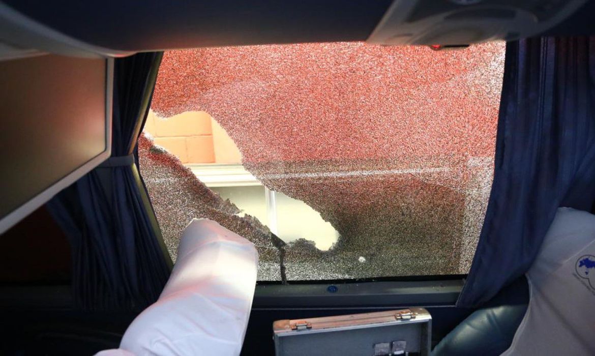 O ônibus do Grêmio foi apedrejado no caminho para o estádio Beira-Rio, em Porto Alegre, para o clássico diante do Internacional, pela nona rodada do Campeonato Gaúcho. A partida, marcada para 19h (horário de Brasília) deste sábado (26), foi inicialmente adiada para 21h. Os clubes aguardam posição da Federação Gaúcha de Futebol (FGF). O Tricolor disse que não entrará em campo.