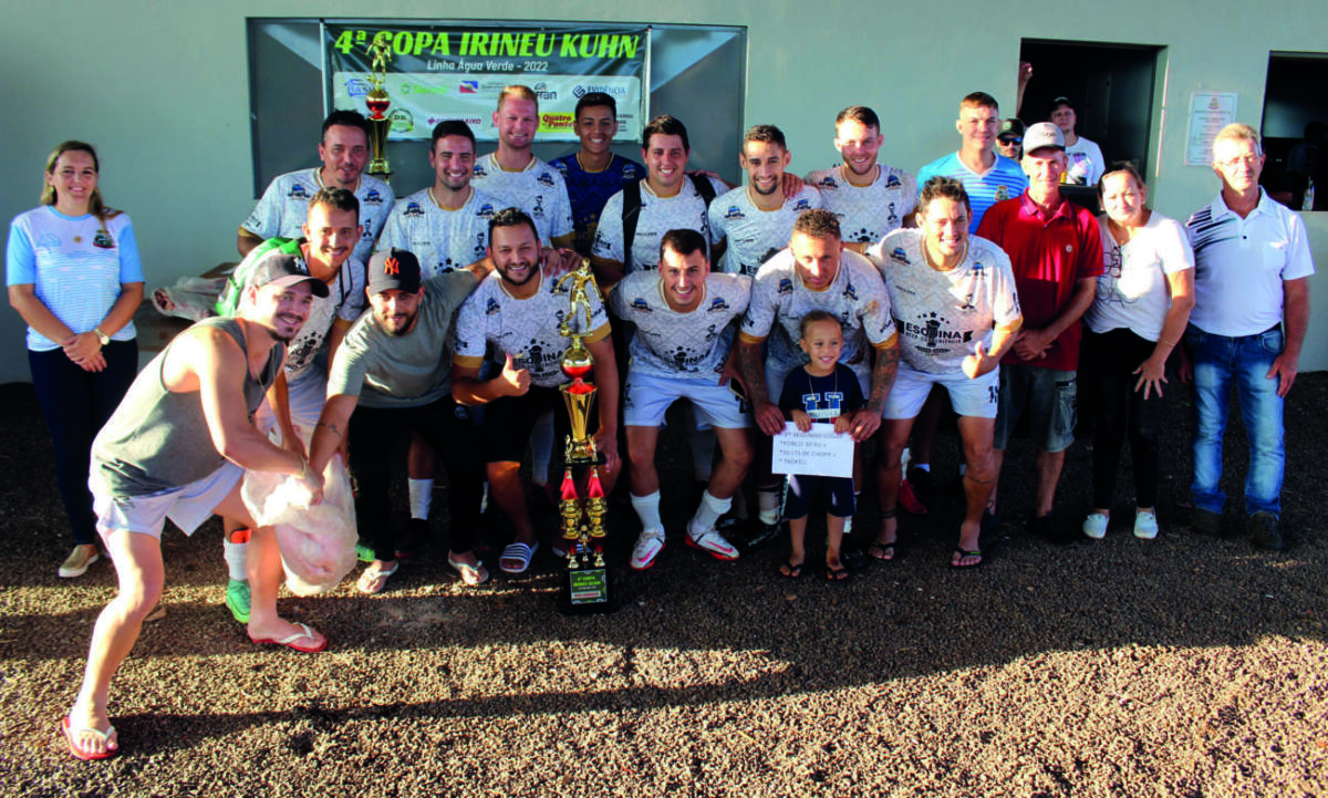 Um jogo digno de final, com direito a golaços, discussões acaloradas e jogadores de alto nível técnico, que valorizaram ainda mais a presença do excelente público que compareceu, no último sábado (12), na Associação de Moradores da Linha Água Verde, em Quatro Pontes, para prestigiar a decisão da 4ª Copa Irineu Kuhn de Futebol Sete, competição que contou com a participação de 16 equipes da região e movimentou diretamente em torno de 250 pessoas, entre jogadores, comissões técnicas e organizadores.