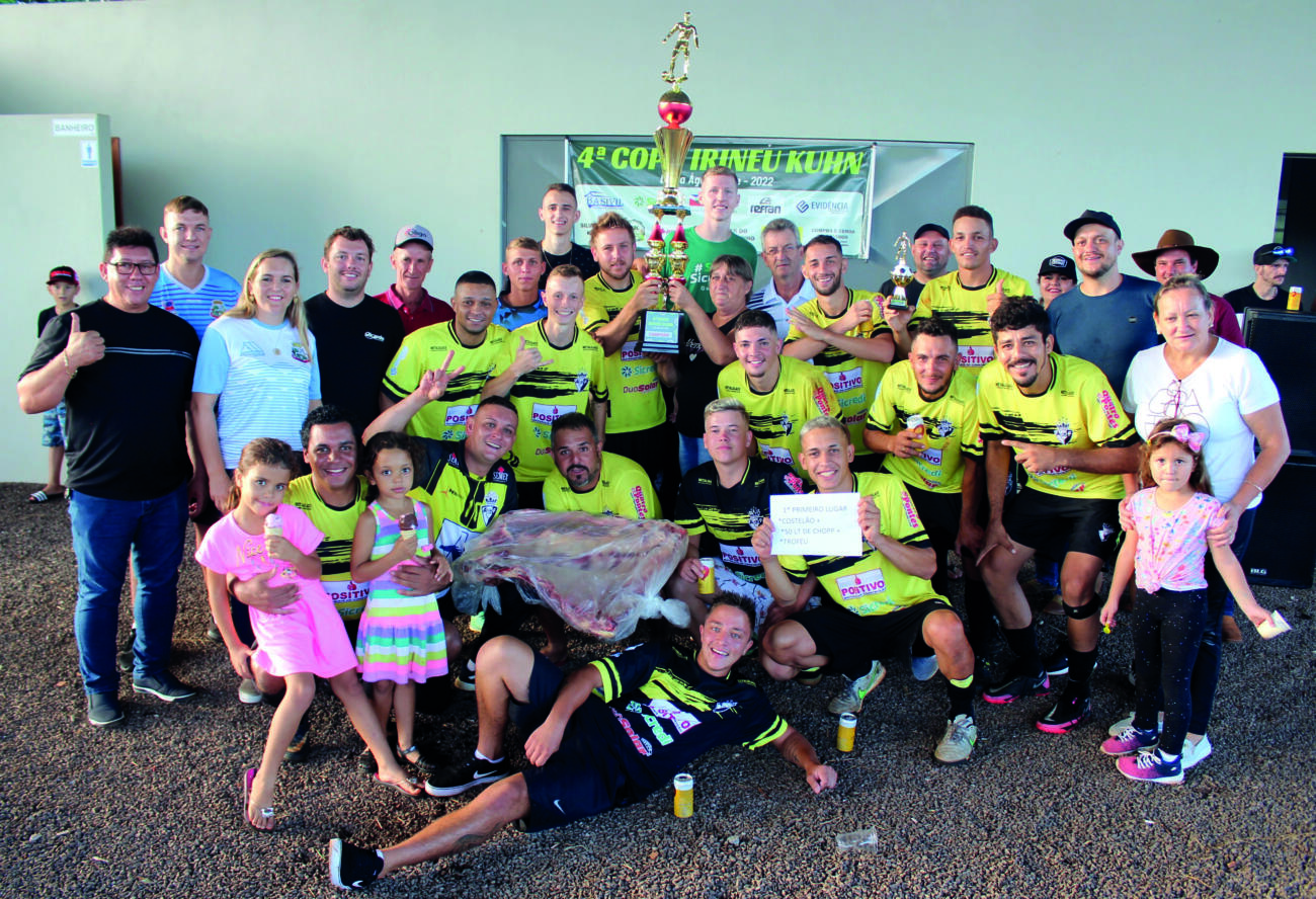 Um jogo digno de final, com direito a golaços, discussões acaloradas e jogadores de alto nível técnico, que valorizaram ainda mais a presença do excelente público que compareceu, no último sábado (12), na Associação de Moradores da Linha Água Verde, em Quatro Pontes, para prestigiar a decisão da 4ª Copa Irineu Kuhn de Futebol Sete, competição que contou com a participação de 16 equipes da região e movimentou diretamente em torno de 250 pessoas, entre jogadores, comissões técnicas e organizadores.