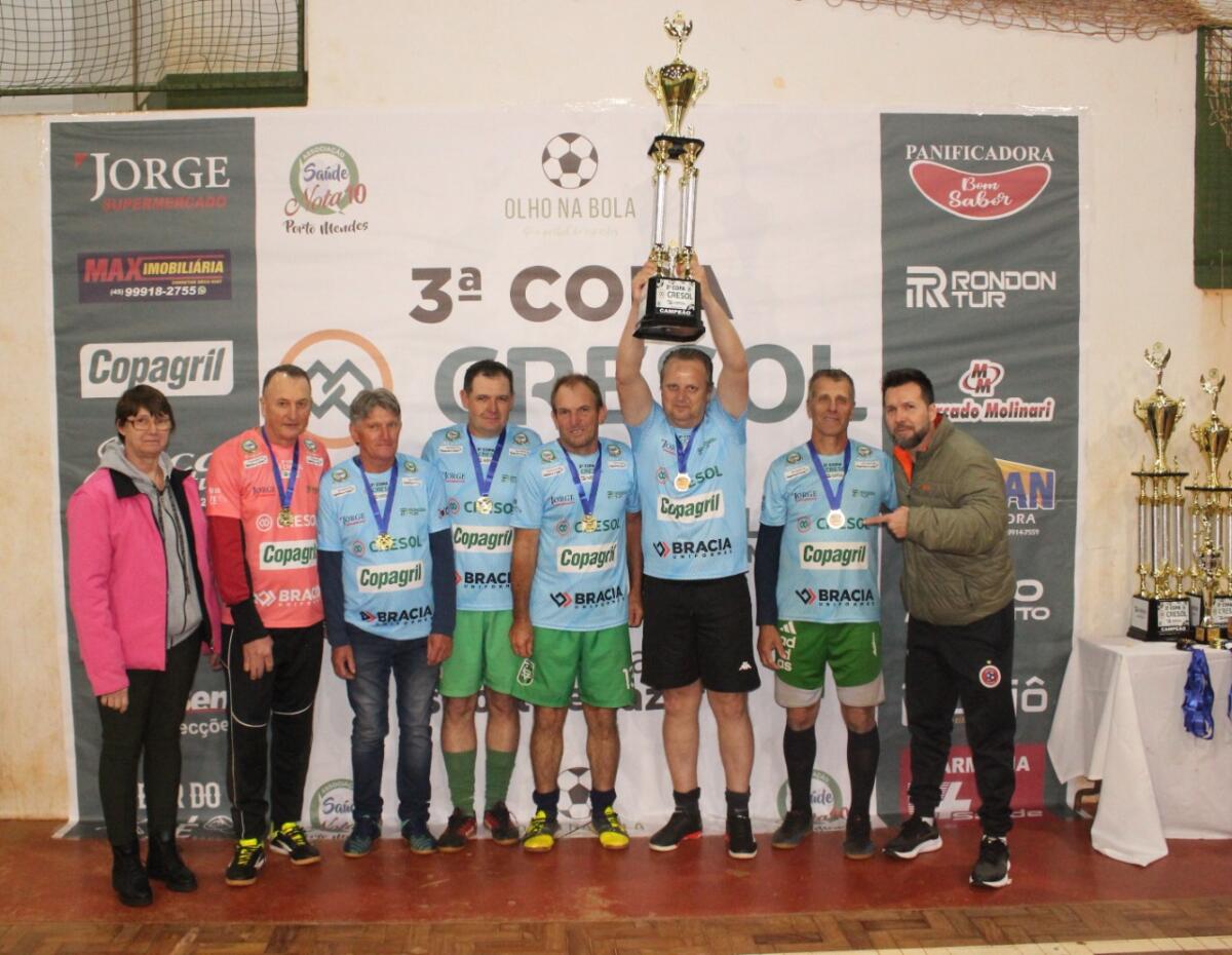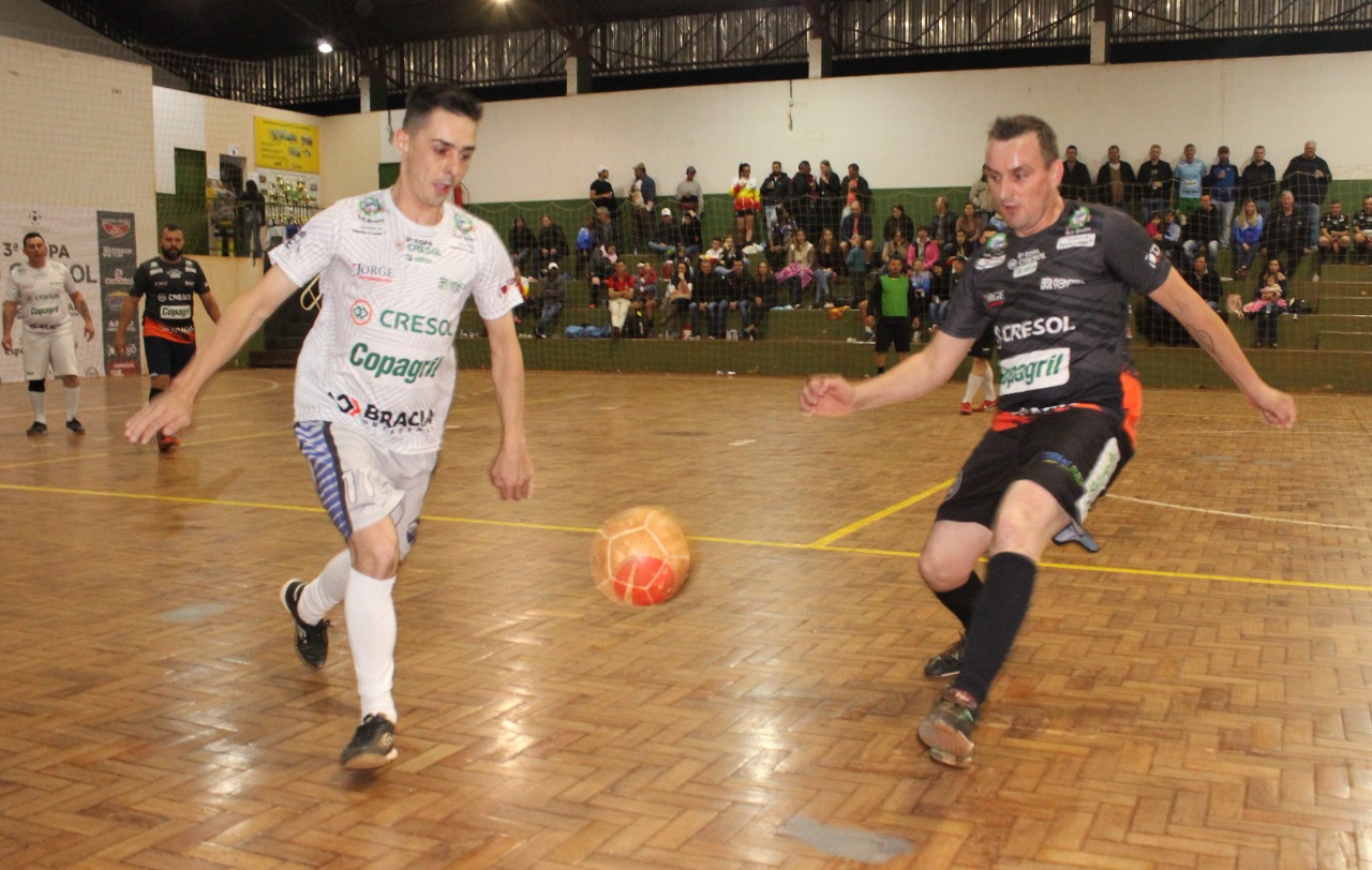 A sequência da rodada foi com as grandes decisões da 3ª Copa Cresol. Pelo Veterano, o Mercado Molinari não deu chances para o Juca Tur e conquistou o título com a maior goleada do dia. Claudemir, Ivanildo e Amauri, um dos artilheiros da competição, marcaram duas vezes cada, e Arlindo também deixou o seu na vitória por 7 a 2. Rogério e Laercio, que dividiu a artilharia com Amauri, ambos com sete gols no total, descontaram para o Juca Tur.