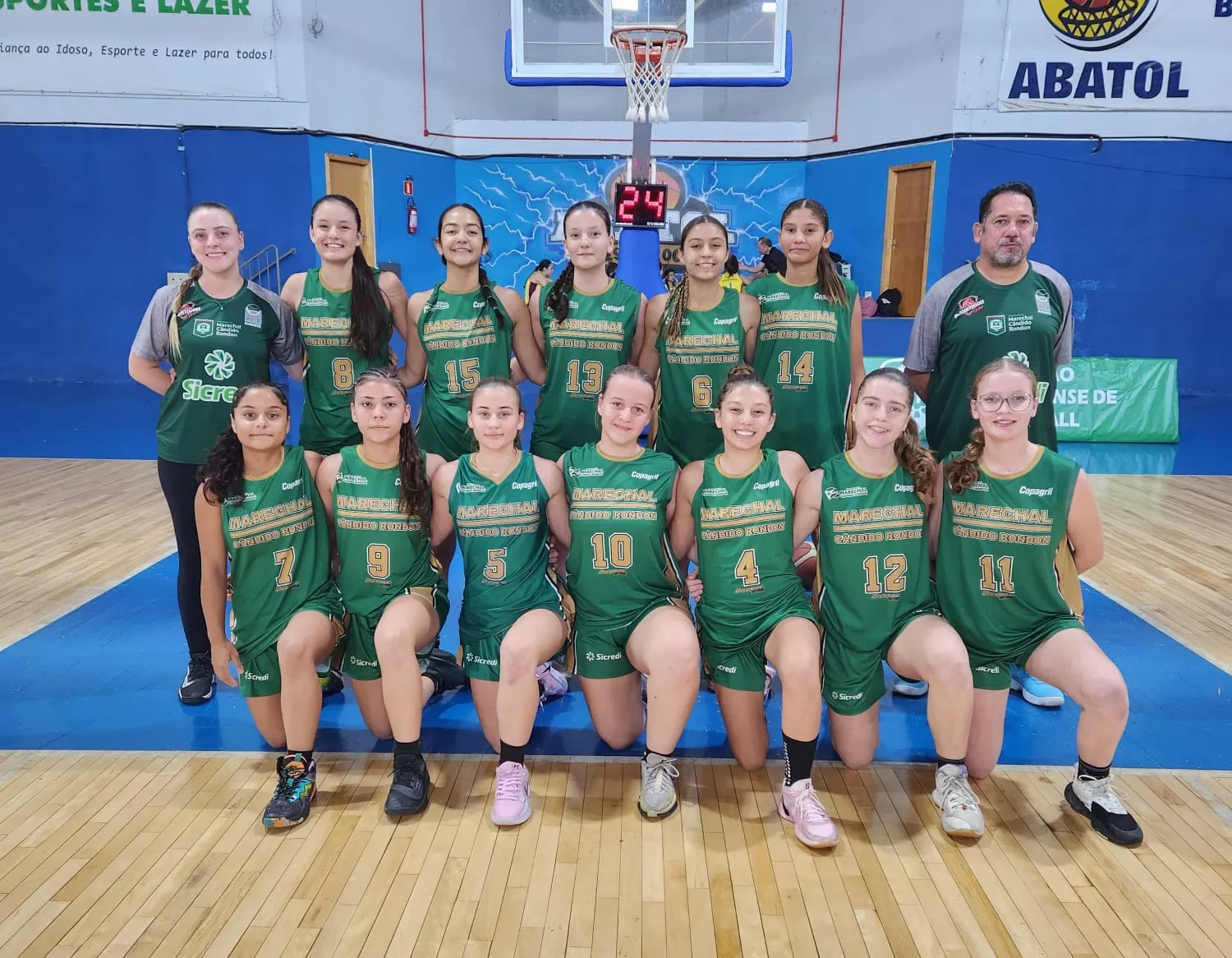 Foi perfeito o desempenho da Prefeitura de Marechal Cândido Rondon/Associação Crescendo com o Basquete/AACC na 1ª etapa do Campeonato Paranaense de Basquete Feminino sub-15, realizado entre os dias 15 e 18 de maio, no ginásio Jaime Zeni, em Toledo.