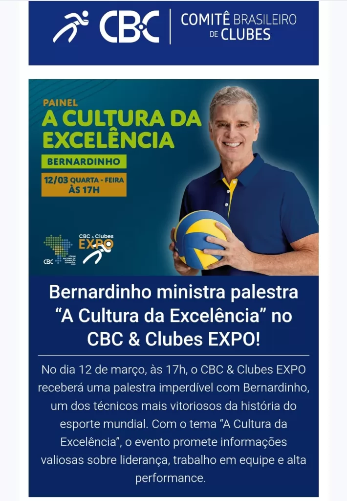 Na programação, palestras e painéis ministrados por grandes ídolos do esporte nacional, como os multi medalhistas mundiais e olímpicos do voleibol Zé Roberto Guimarães, André Heller e Bernardinho, este último tendo ministrado a palestra “Cultura da Excelência”, na qual realizou abordagens bastante oportunas sobre o comportamento da geração atual de crianças e jovens, chamando os adultos à reflexão.