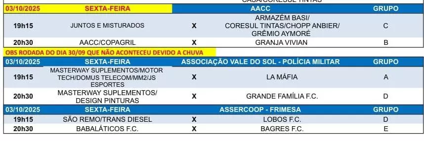 Quatro partidas abriram nesta quinta-feira (02) a terceira semana do Campeonato Municipal de Futebol Suíço Livre 2025, organizado pela Secretaria de Esportes e Lazer de Marechal Cândido Rondon.