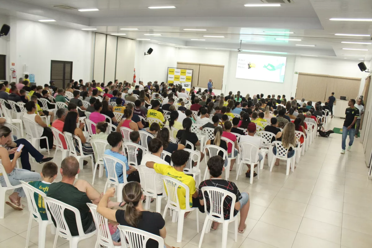 A sala de reunião da Associação Atlética Cultural Copagril esteve lotada nesta quarta-feira (2), para um encontro entre pais, alunos, professores e coordenadores, para falar sobre o planejamento das escolinhas de futsal e futebol da AACC para 2025.