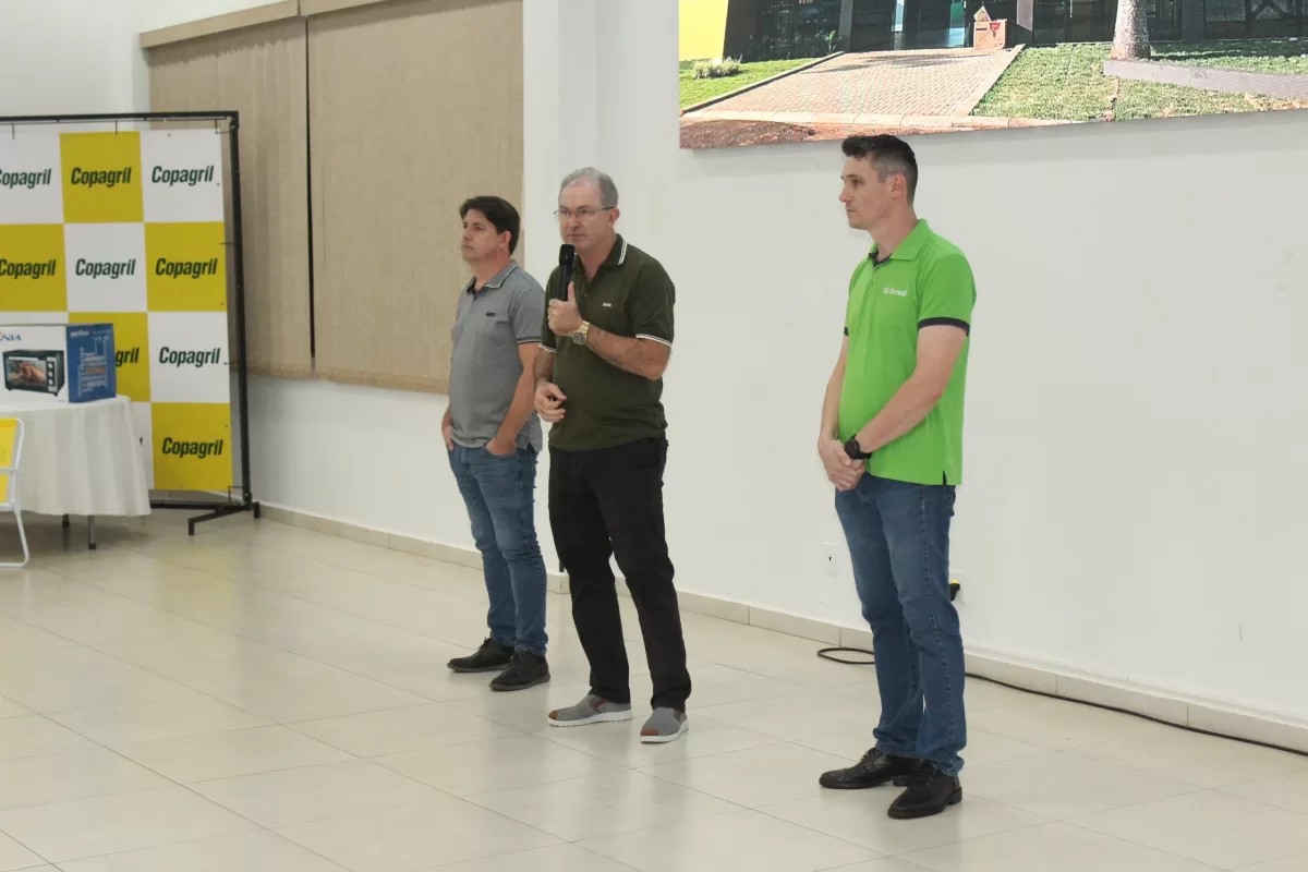 A reunião teve início com pronunciamentos de Eloi Darci Podkowa, diretor presidente da Copagril, Gilberto Mayer, o Beto, e Leonardo Davi Schaufelberger, gerente da agência Sicredi da Copagril.