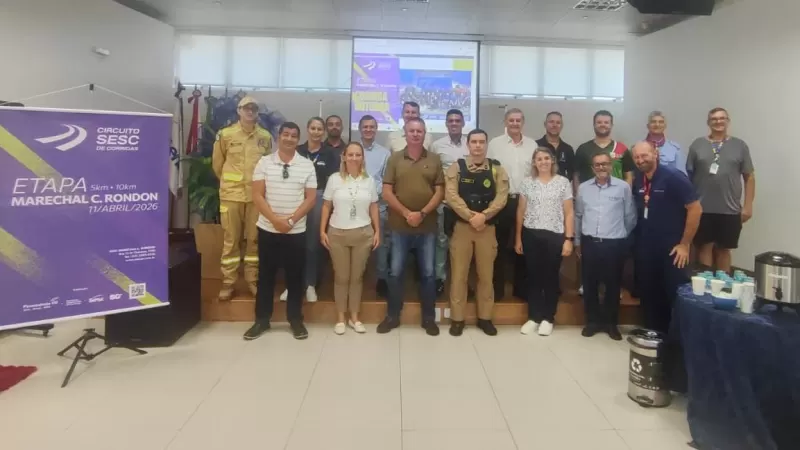 O Sistema Fecomércio Sesc Senac PR promoveu nesta terça-feira (3) uma reunião de alinhamento para a organização da etapa 2026 do Circuito Sesc de Corridas – Etapa Marechal Cândido Rondon, que acontecerá no dia 11 de abril de 2026. O encontro foi realizado no auditório do Senac e reuniu representantes de diversas instituições parceiras e forças de segurança do município.