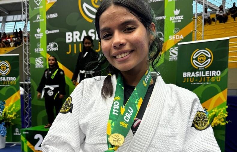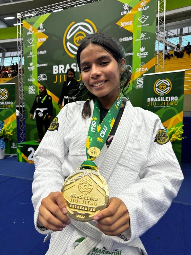 A atleta rondonense Karolline Vilaça, da Aprove, conquistou o título de campeã brasileira de jiu-jitsu, na categoria juvenil 2, faixa branca, peso galo. A competição foi disputada de 20 a 28 de abril, em Barueri (SP), com participação de esportistas de todo o Brasil.