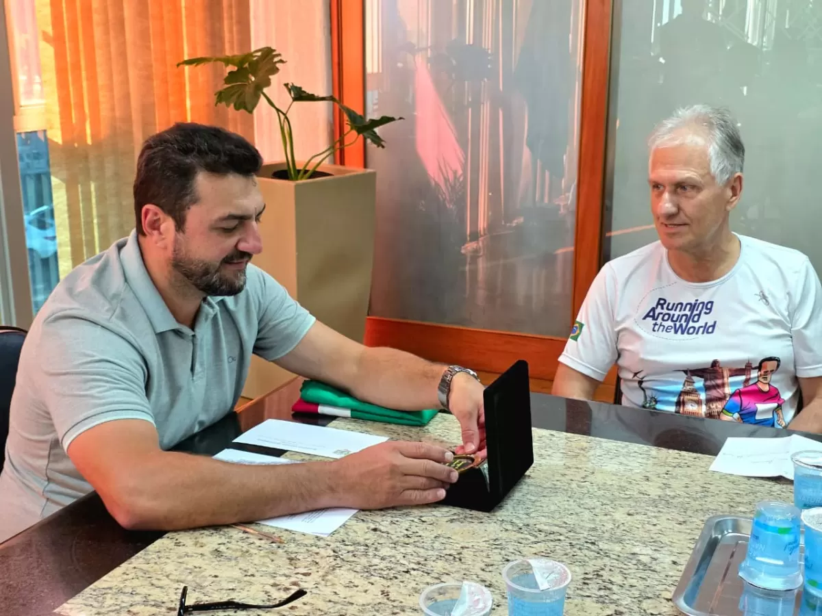 O município também repassou canecas institucionais para serem entregues à autoridade italiana, como lembrança oficial de Marechal Rondon durante o evento internacional e uma bandeira para ser utilizada pelo corredor na linha de chegada.