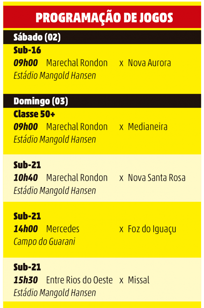 O duelo entre Marechal Rondon e Medianeira acontece domingo (03), às 09 horas, no Estádio Mangold Hansen, casa do Botafogo.