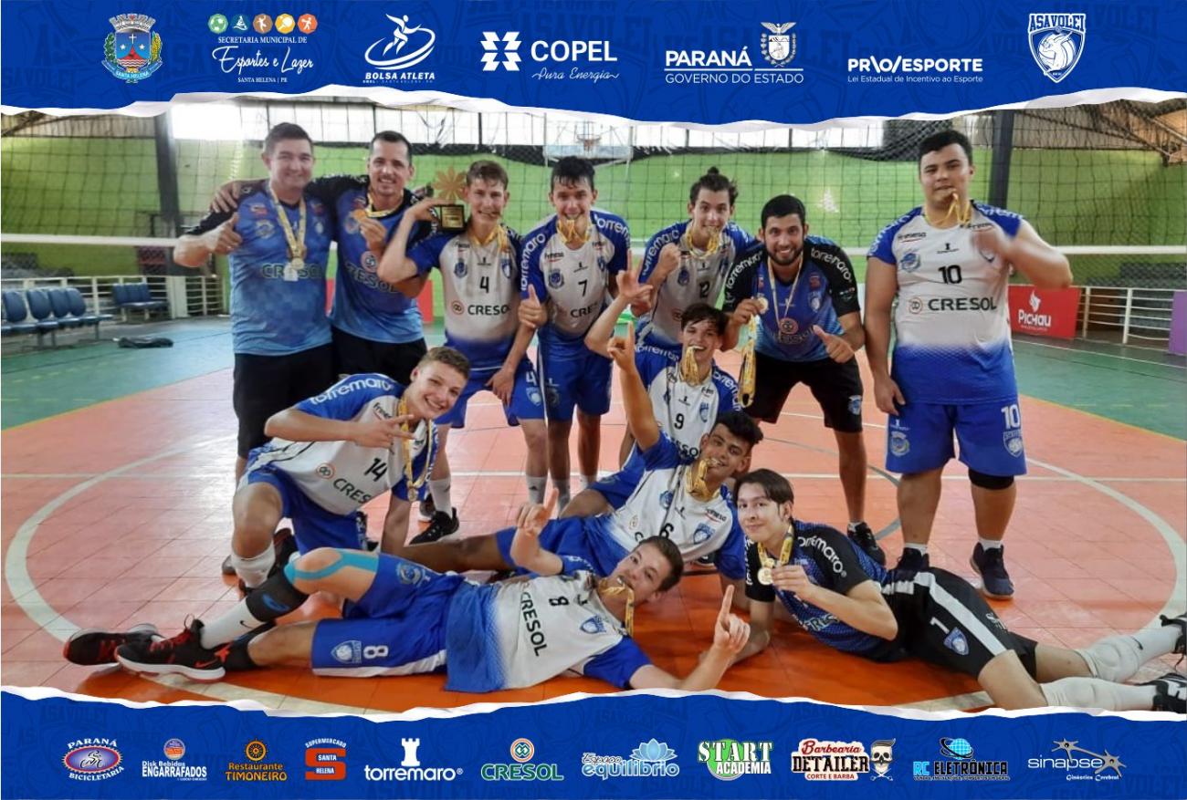 Santa Helena entrou em ação no sábado (05), em Foz do Iguaçu, pela semifinal contra Maripá e venceu por 2 sets a 0, parciais 25×12 e 25×18. no domingo (06) foi a vez de disputar a grande final contra Medianeira. Os meninos santa-helenenses jogaram muito e ganharam por 3 sets a 0, resultados 13×25, 24×26 e 14×25 e foram ao delírio com o primeiro lugar. Na volta à Santa Helena, toda equipe foi recebida com muitos aplausos por pais, amigos, autoridades e desfilaram no caminhão do Corpo de Bombeiros.