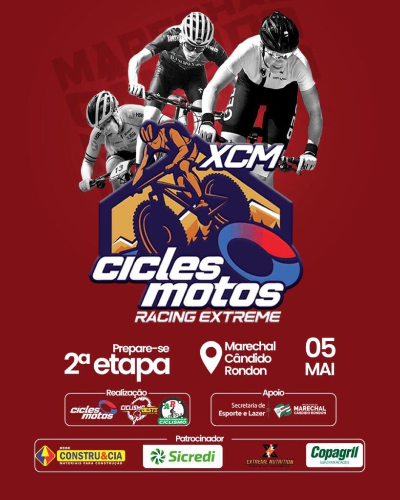 Continuam abertas as inscrições à 2ª etapa da XCM Cicles Motos Racing Extreme. O evento acontecerá no Clube de Campo Roda D’Água, em Marechal Cândido Rondon, no dia 5 de maio, com concentração, assinatura de súmulas e retirada das plaquinhas das 7 horas às 7h40, e largadas a partir das 8 horas.